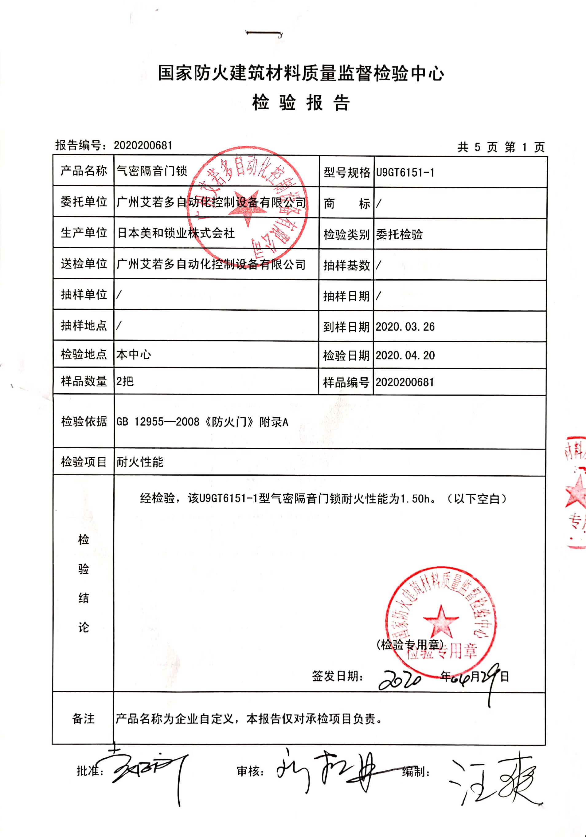 地氣密隔音門鎖防火檢測報(bào)告